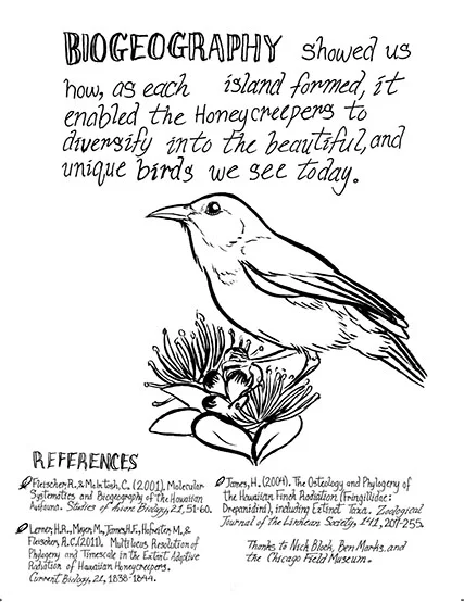 My mini zine created for my Evolution and Biodiversity class on the topic of Hawaiian Honeycreepers and their Biogeography.