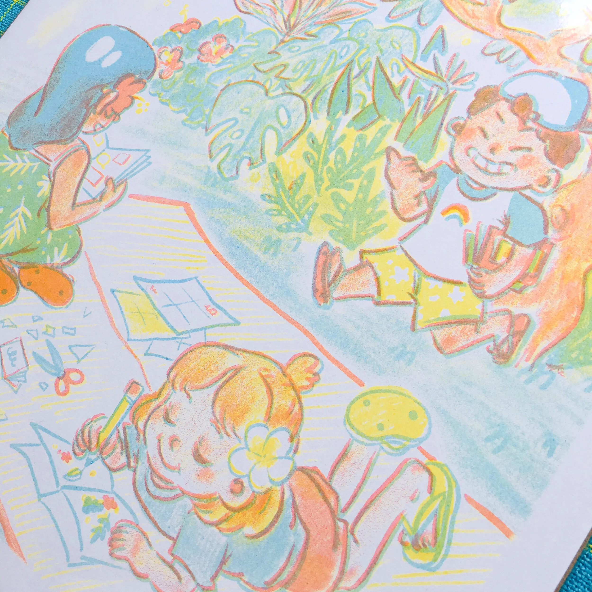 Selected illustrations created using a risograph printer. Printing done by RISO Hell (St. Louis, MO) and Perfectly Acceptable Press (Chicago, IL).