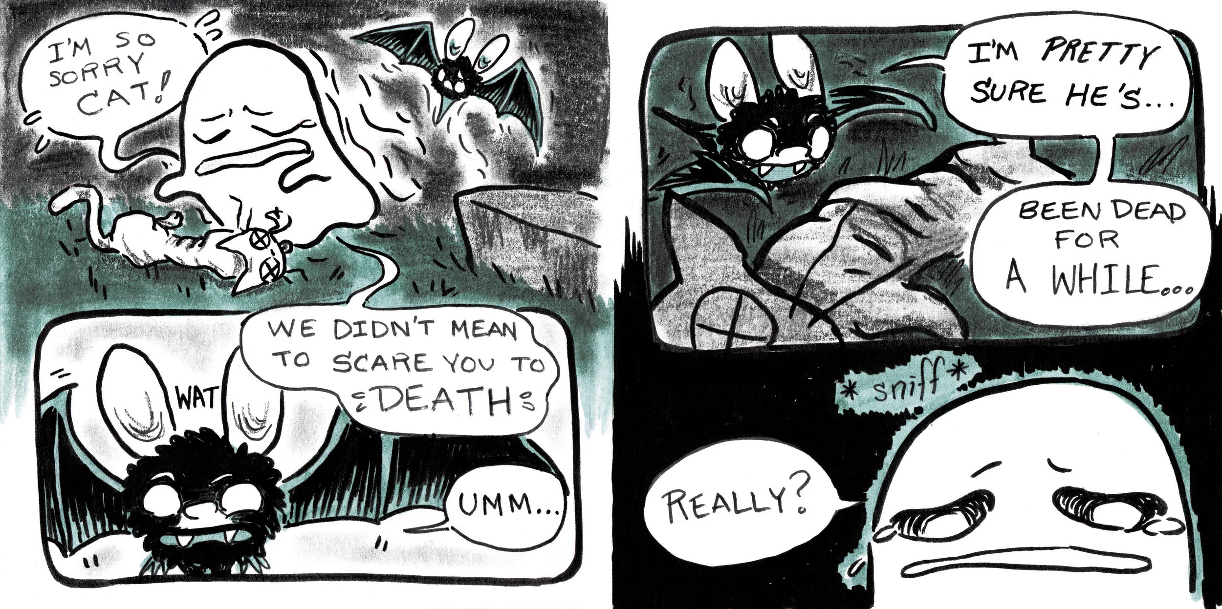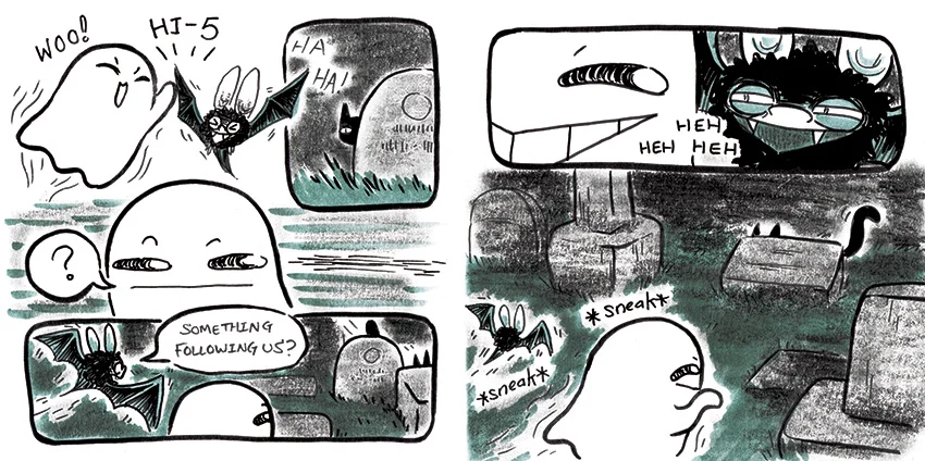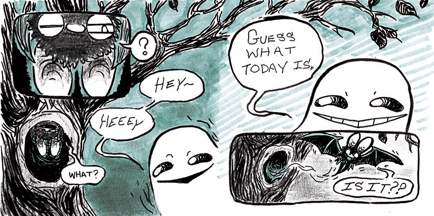 A short comic of a little trickster ghost and his batty friend. Debuted at Chicago Zine Fest 2015.