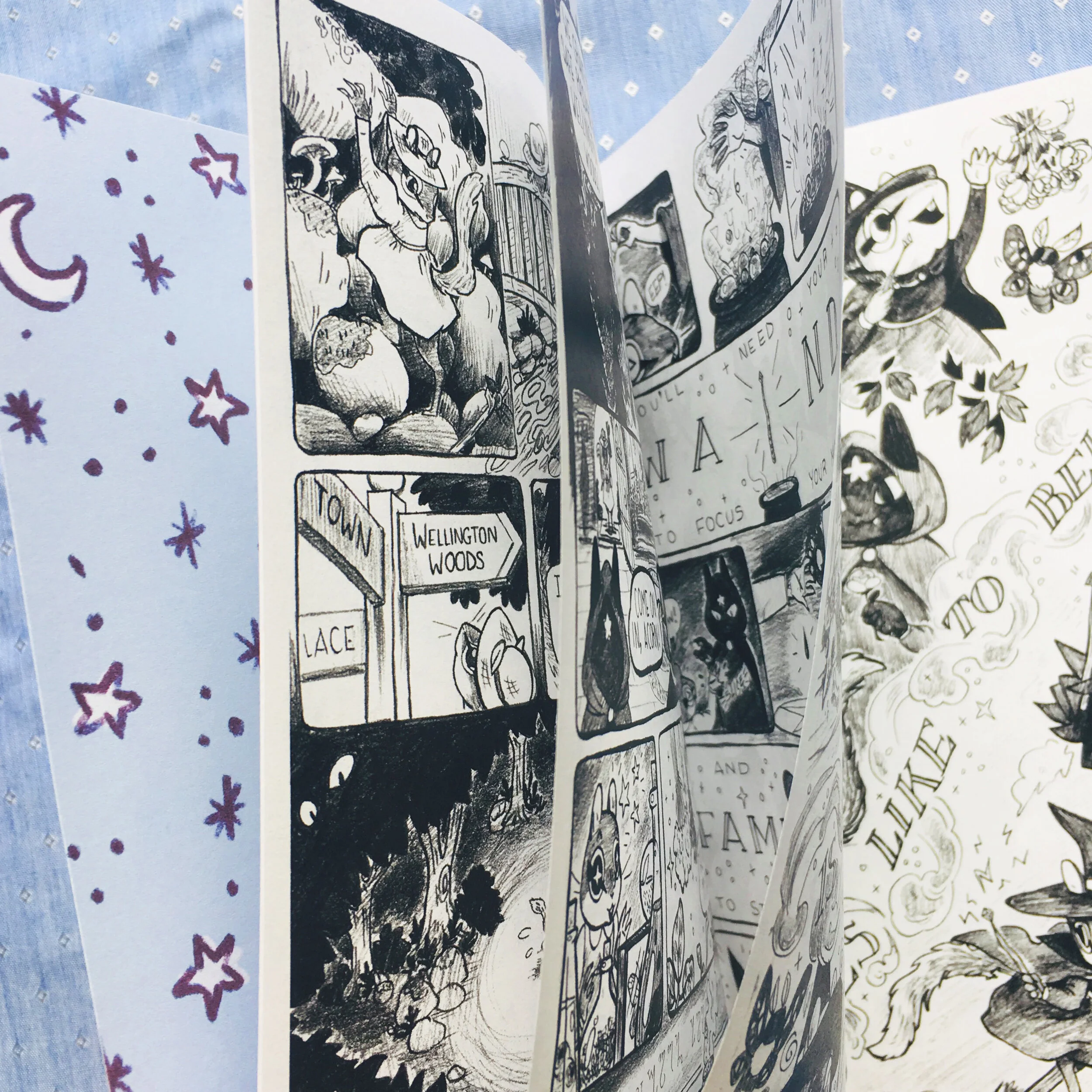Select pages and images from my 15 page story submitted to friendship anthology, Group Chat published by POMEPress. Reprinted as a stand-alone story in 2019. Anthology cover by Victoria Grace Elliot. Group Chat debuted at TCAF 2018, and stand-alone version of story debuted at TCAF 2019.